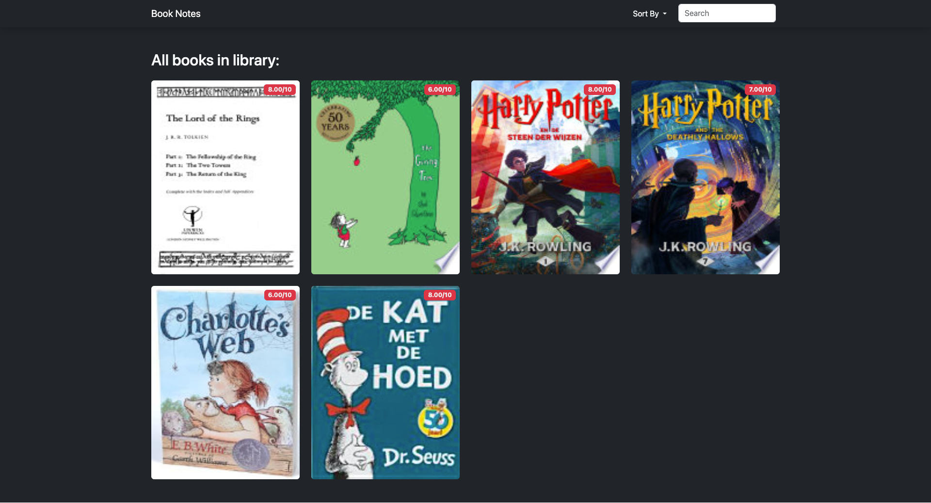 Een functionele applicatie voor het zoeken, opslaan en beheren van boeken met persoonlijke notities, gebruikmakend van een externe API en een PostgreSQL-database.