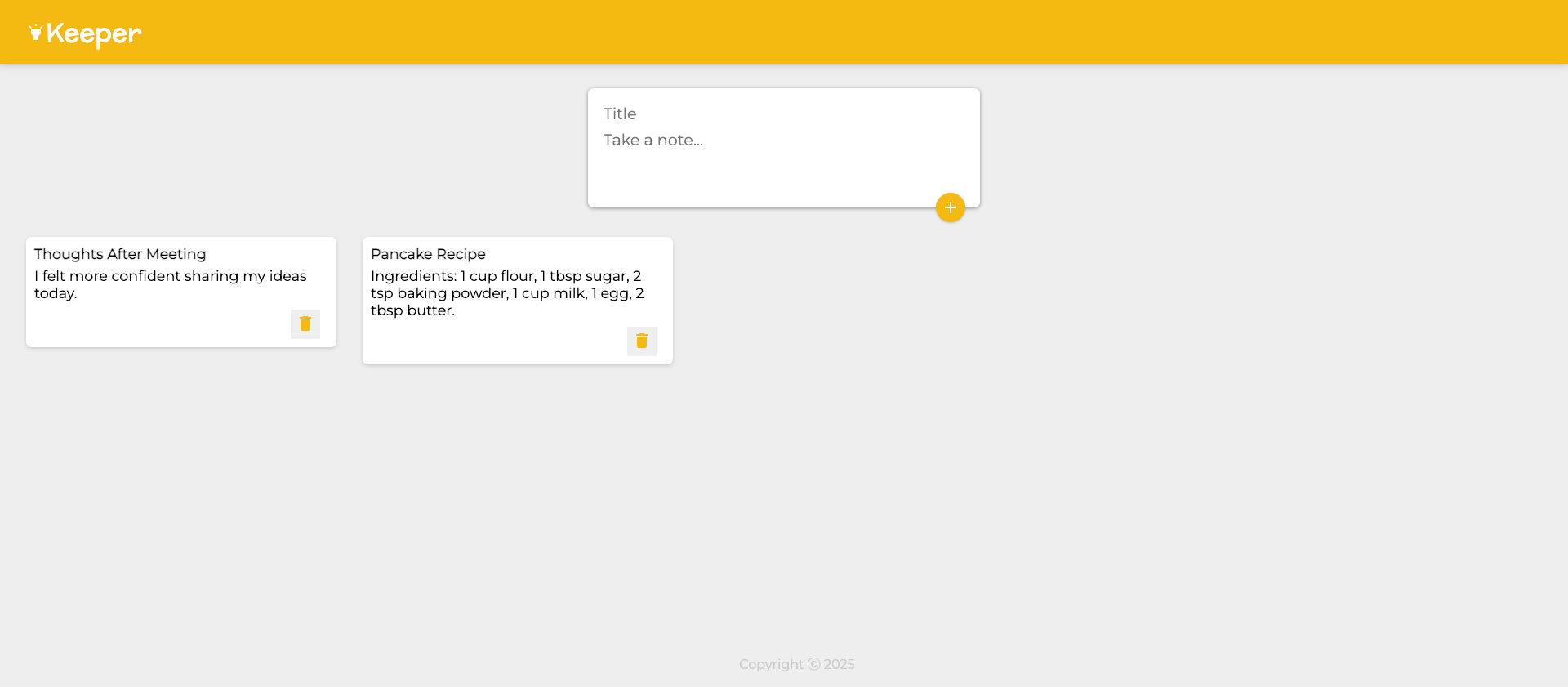 Een eenvoudige notitie-app gebouwd met React.js, waarmee gebruikers notities kunnen maken, weergeven en verwijderen. Ideaal voor het snel vastleggen van ideeën.