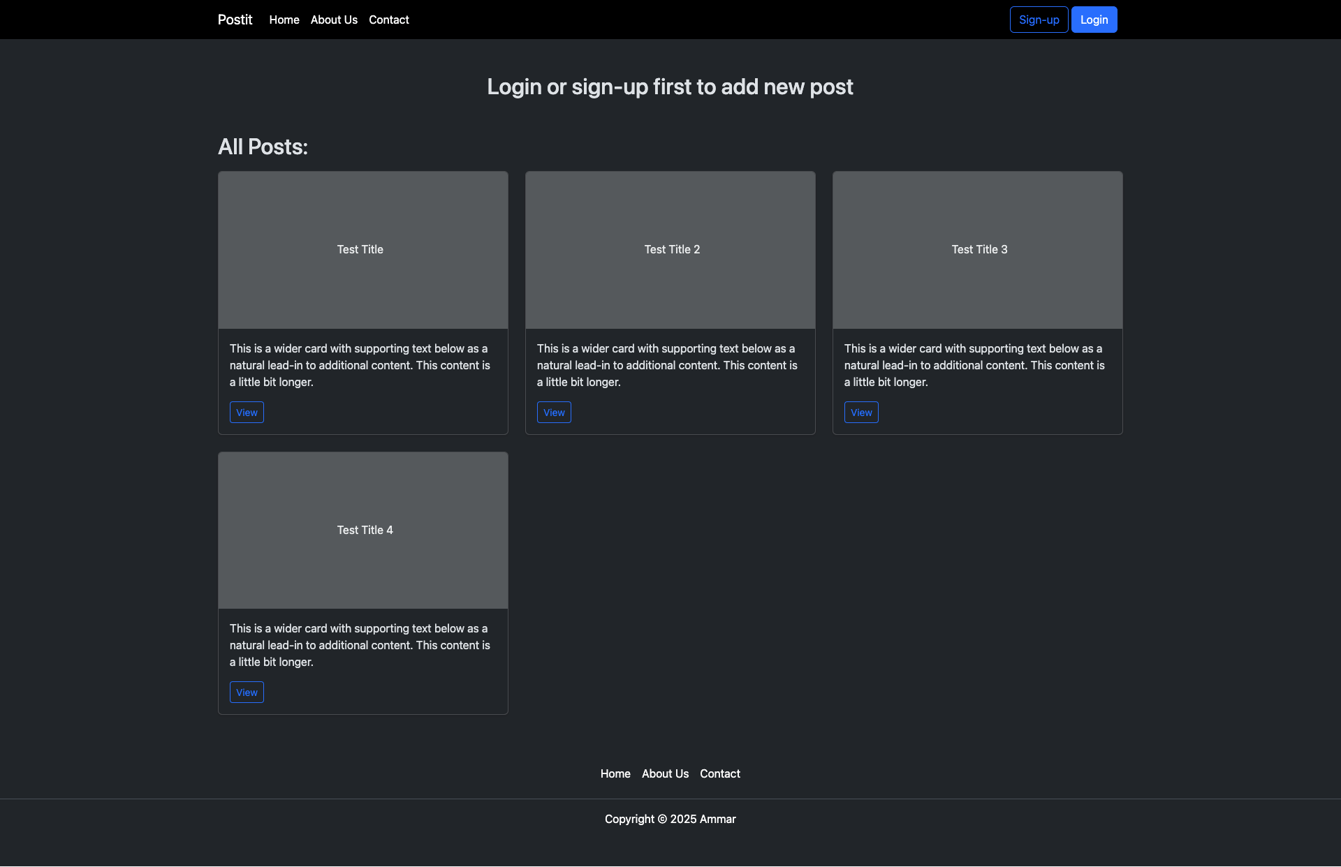 Postit is een basis webapp voor het beheren van blogposts. Gebruikers kunnen zich registreren, inloggen, en berichten maken, bewerken of verwijderen.