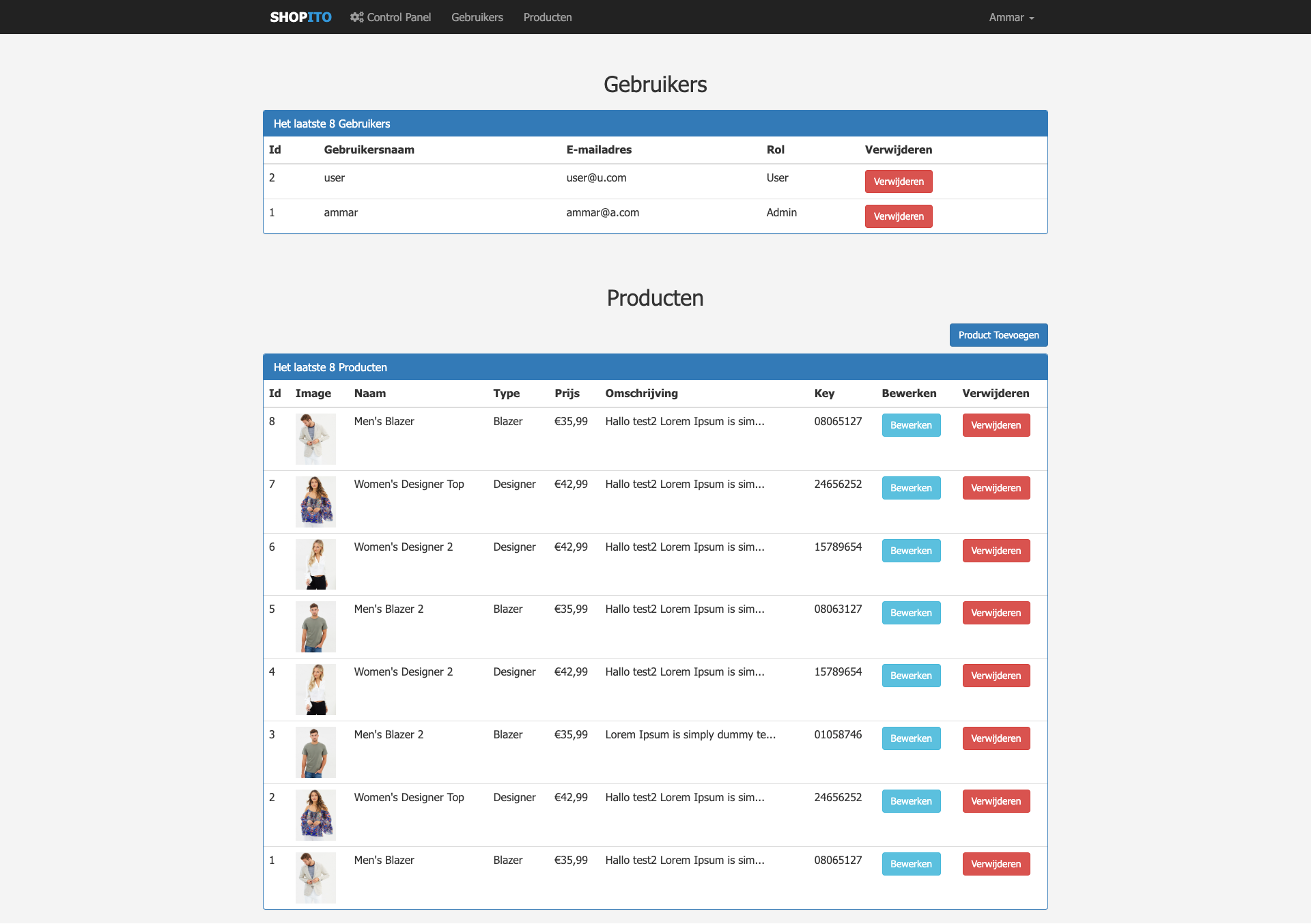 Een dynamische webwinkel met een beheerderspaneel voor producten- en gebruikersbeheer, gebouwd met PHP en SQL.